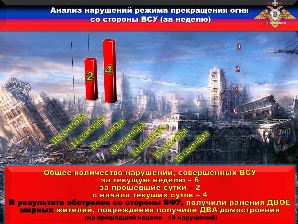 Факты нарушений в оперативном порядке доведены до представителей украинской стороны в СЦКК, с целью своевременного принятия мер к нарушителям перемирия и исключения фальсификации данных о нарушениях режима прекращения огня со стороны украинских боевиков.
