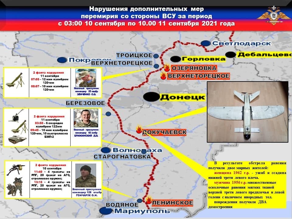Также боевики 25-й бригады, по приказу комбрига ЗЕНЧЕНКО, обстреляли н.п. ВЕРХНЕТОРЕЦКОЕ и н.п. ОЗЕРЯНОВКА с применением 120-мм минометов, выпустив, в общей сложности, ДВАДЦАТЬ ДВЕ мины.