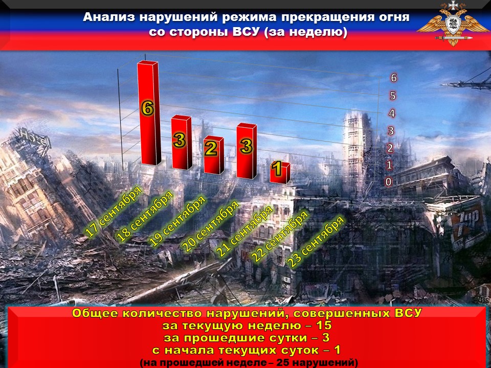 Факты нарушений в оперативном порядке доведены до представителей украинской стороны в СЦКК, с целью своевременного принятия мер к нарушителям перемирия и исключения фальсификации данных о нарушениях режима прекращения огня со стороны украинских боевиков.