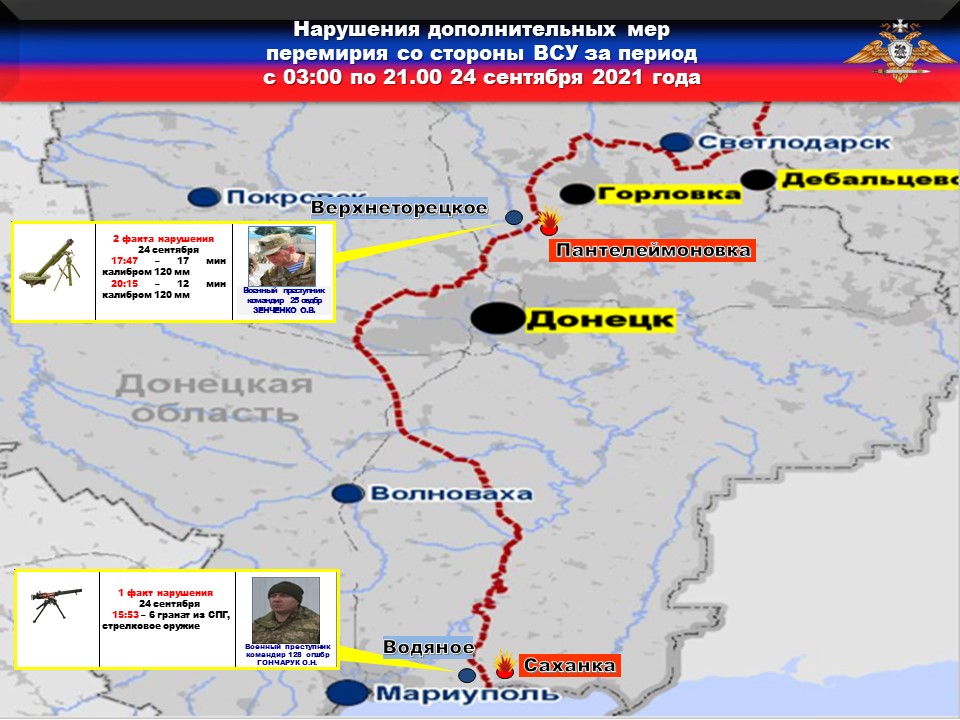 Факты нарушений в оперативном порядке доведены до представителей украинской стороны в СЦКК, с целью своевременного принятия мер к нарушителям перемирия и исключения фальсификации данных о нарушениях режима прекращения огня со стороны украинских боевиков.