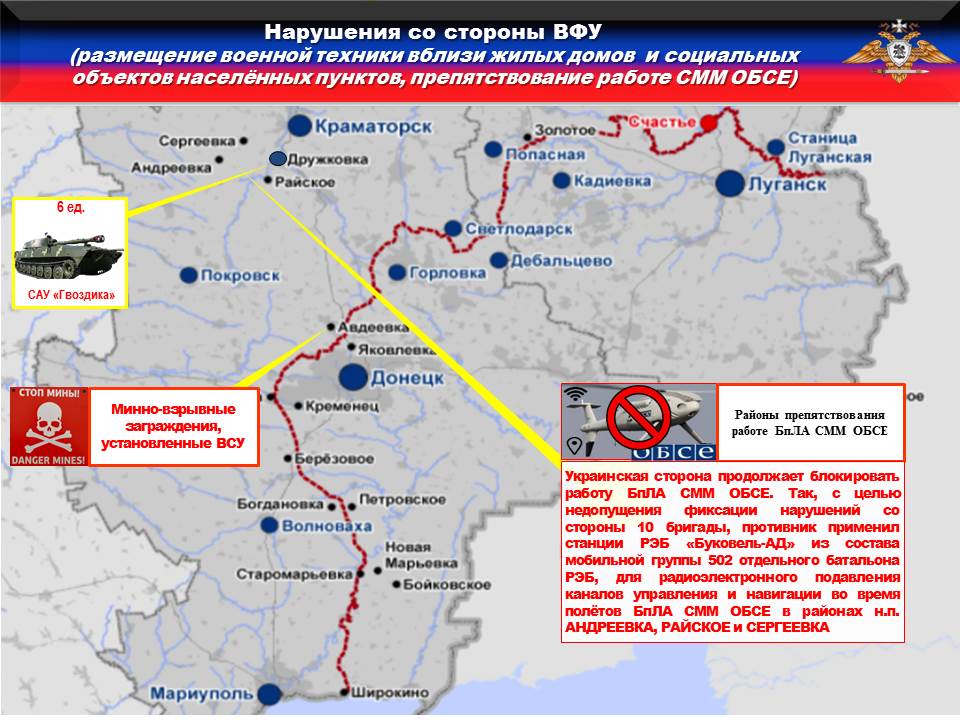 Украинская сторона продолжает блокировать работу БпЛА СММ ОБСЕ. Так, с целью недопущения фиксации нарушений со стороны