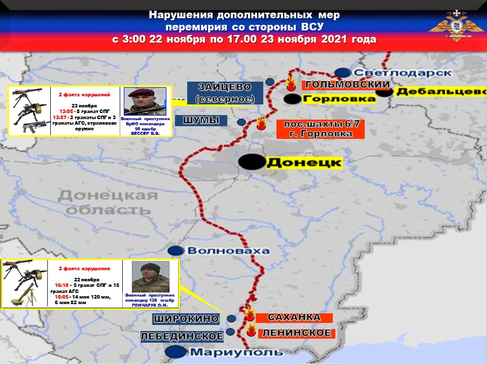 На Горловском направлении военные преступники 95 бригады, по приказу военного преступника ВЕССЕР из различного типа гранатометов обстреляли районы н.п. ГОЛЬМОВСКИЙ и поселка шахты «6/7» г. ГОРЛОВКА.