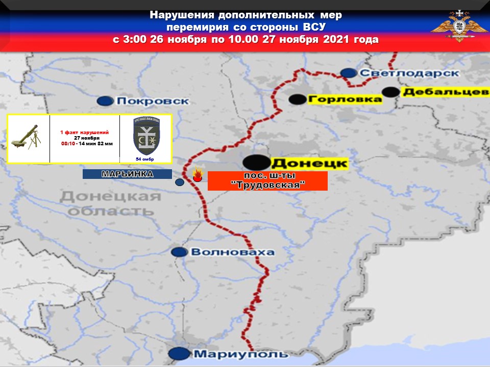 Брифинг официального представителя Управления Народной милиции ДНР по обстановке на 27.11.2021 (текст)