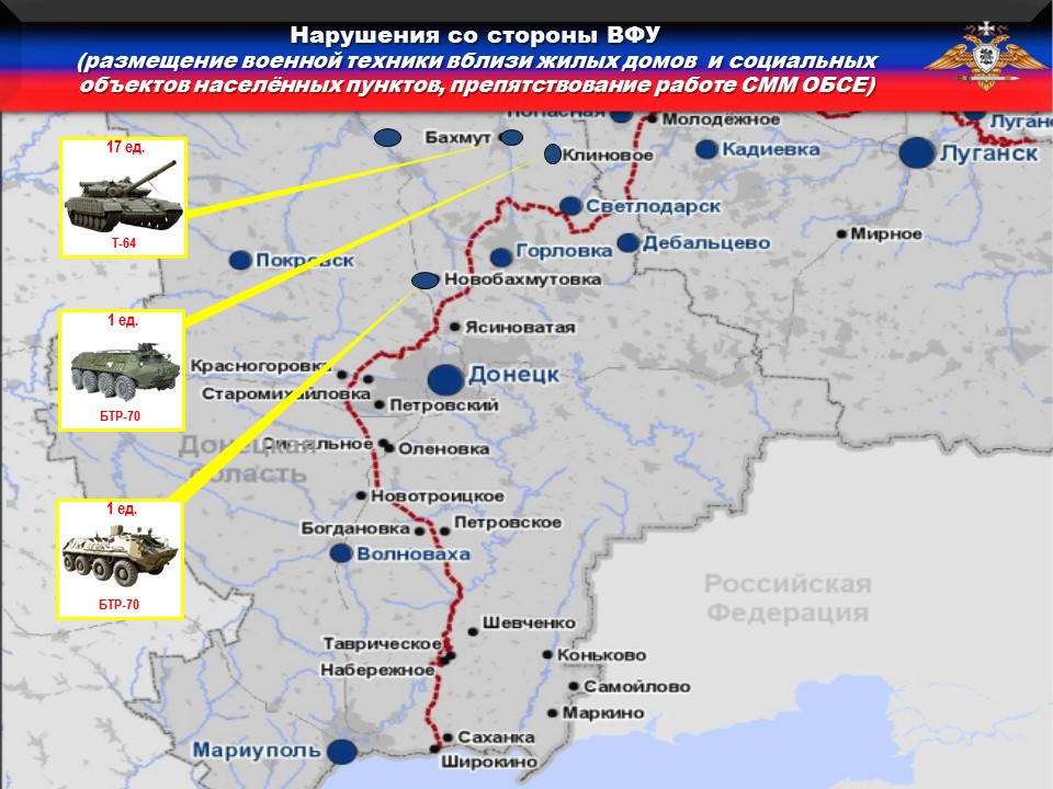 В нарушение ТРЕТЬЕГО пункта дополнительных мер, киевские оккупанты разместили ДЕВЯТНАДЦАТЬ единиц вооружения и военной техники в ТРЕХ подконтрольных Украине населенных пунктах.