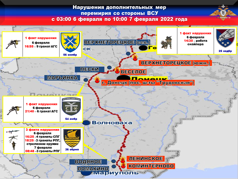За прошедшие сутки со стороны украинских боевиков зафиксировано ПЯТЬ нарушений режима прекращения огня.