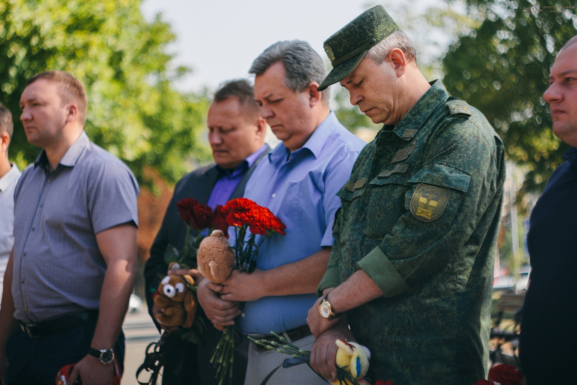 В понедельник, 28 августа в парке Победы г. Донецка почтили память погибших от рук украинских карателей детей Донбасса. Возложить цветы пришли заместитель командующего ВС ДНР, полковник Эдуард Басурин, и.о. министра информации ДНР Игорь Антипов, представители районных администраций, общественных организаций и местные жители.
